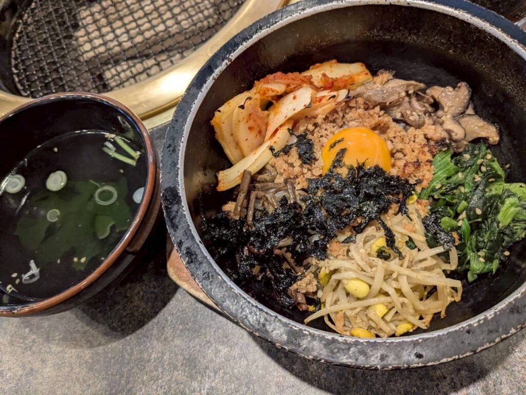 カルビはオーソドックスな味付けで可もなく不可もなく。ハラミはジューシーで柔らかく、肉好きには刺さる一品。石焼ビビンバはサイドメニューとして優秀で、2人でシェアするのにちょうどいい量だった。